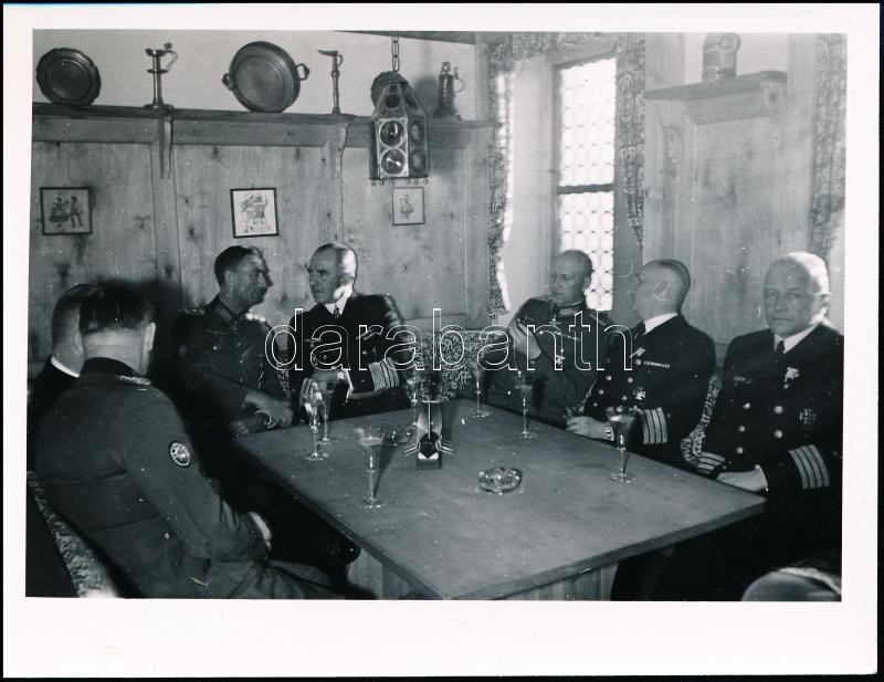 1942 Egy bajorországi vendéglőben, a képen többek között Jodl és Dietl vezérezredesek, fotó, hátulján pecséttel jelzett, Alfred Jodl hagyatékából 9×12 cm /
