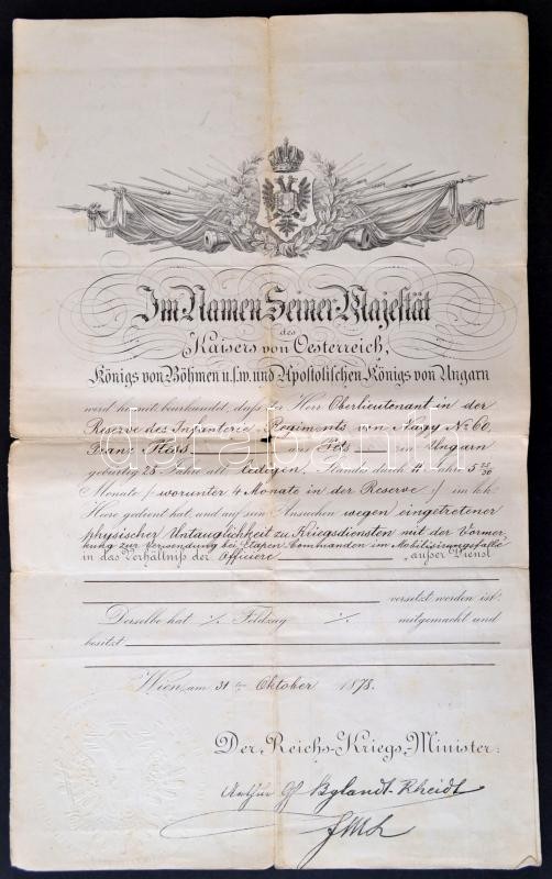 1978 Bécs, Császári-királyi végelbocsátó levél, fizikai alkalmatlanság... https://www.darabanth.com/de/30-Gross-Auktion/30.1/Andere-Sammelgebiete/Militaria~12616/1978-Becs-Csaszari-kiralyi-vegelbocsato-level-fizikai-alkalmatlansag-miatt-birodalmi-had~II1861510