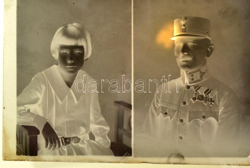 Beschreibung: cca 1925 és 1940 között készült katonai felvételek (családi körben is) az egri Fotó-GRÁF műterem hagyatékából, többen kitüntetést viselnek, 12x16 cm