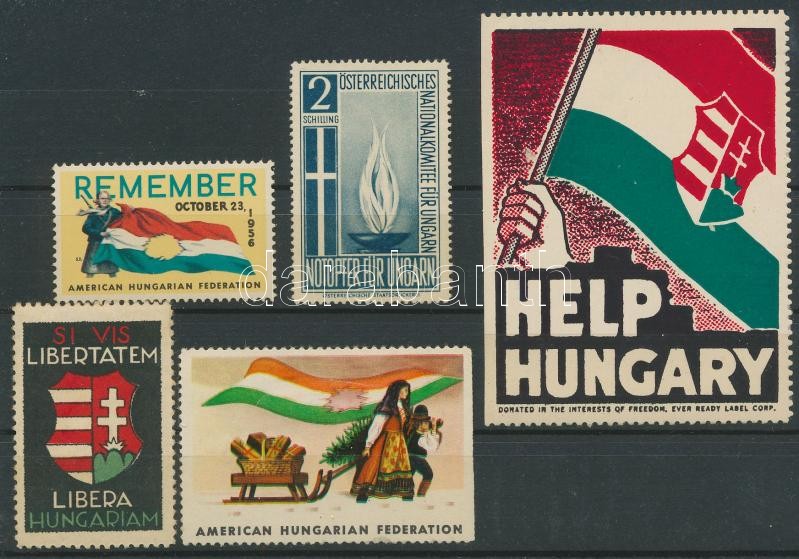 Beschreibung: 1956 forradalommal kapcsolatos amerikai és osztrák levélzárók / posters stamps about the Hungarian revolution