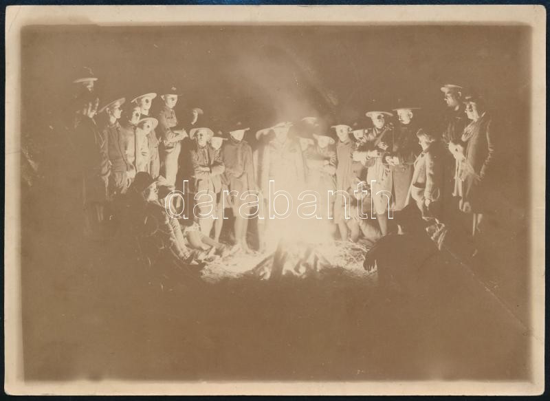 cca 1925 cserkészek tábortűznél, fotó, 13×18 cm / scouts at campfire, ... https://www.darabanth.com/de/30-Gross-Auktion/30.1/Andere-Sammelgebiete/Pfadfinder~12193/cca-1925-cserkeszek-tabortuznel-foto-13C39718-cm-scouts-at-campfire-photo~II1862032