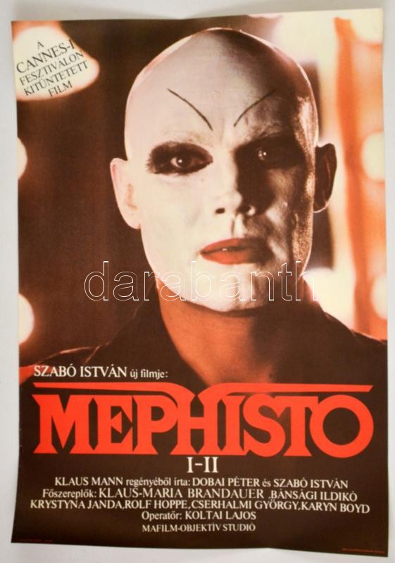 1981 Mephisto, Oscar és Cannes-i díjas magyar film plakát, rendezte: S... https://www.darabanth.com/de/30-Gross-Auktion/30.1/Andere-Sammelgebiete/Poster~12198/1981-Mephisto-Oscar-es-Cannes-i-dijas-magyar-film-plakat-rendezte-Szabo-Istvan-81x56-cm~II1847146