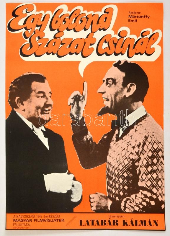 1986 Egy bolond százat csinál, magyar filmvígjáték felújított verziójá... https://www.darabanth.com/de/30-Gross-Auktion/30.1/Andere-Sammelgebiete/Poster~12198/1986-Egy-bolond-szazat-csinal-magyar-filmvigjatek-felujitott-verziojanak-plakatja-Moziny~II1846815