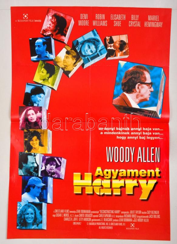 1997 Agyament Harry, amerikai film plakát, rendezte: Woody Allen, hajtásnyommal, 97x68 cm / Deconstructing Harry film poster, directed by Woody Allen, folded, 97x68 cm