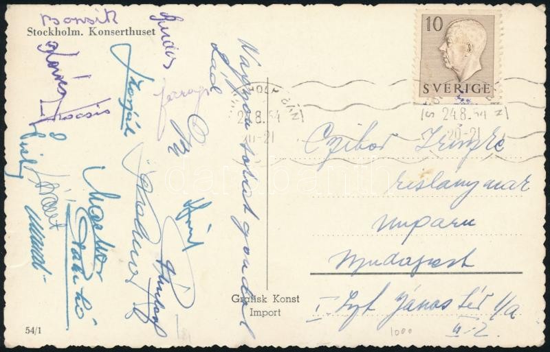 1954 Magyar válogatott labdarúgók aláírásai (Puskás, Kocsis, Bozsik, s... https://www.darabanth.com/de/30-Gross-Auktion/30.1/Andere-Sammelgebiete/Signatur~12188/1954-Magyar-valogatott-labdarugok-alairasai-Puskas-Kocsis-Bozsik-stb-levelezolapon~II1861986