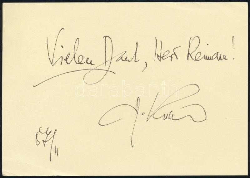 1987 Ephraim Kishon (1924-2005) izraeli író, filmrendező üdvözlő sorai... https://www.darabanth.com/de/30-Gross-Auktion/30.1/Andere-Sammelgebiete/Signatur~12188/1987-Ephraim-Kishon-1924-2005-izraeli-iro-filmrendezo-udvozlo-sorai-es-alairasa-levelez~II1862013