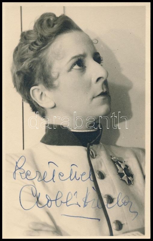 Beschreibung: Gobbi Hilda (1913-1988) színésznő aláírása őt ábrázoló fotón