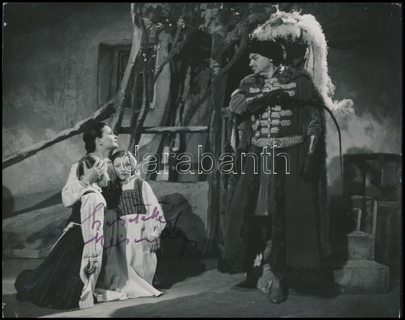 Beschreibung: Mészáros Ági (1914-1989) színésznő aláírása színházi standfotón