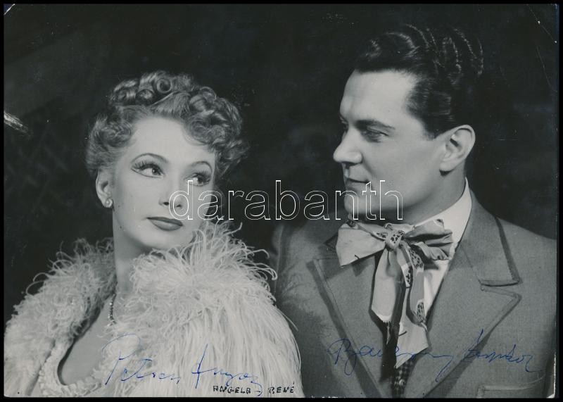 Beschreibung: Petress Zsuzsa és Baksay Árpád színészek aláírása színházi standfotón