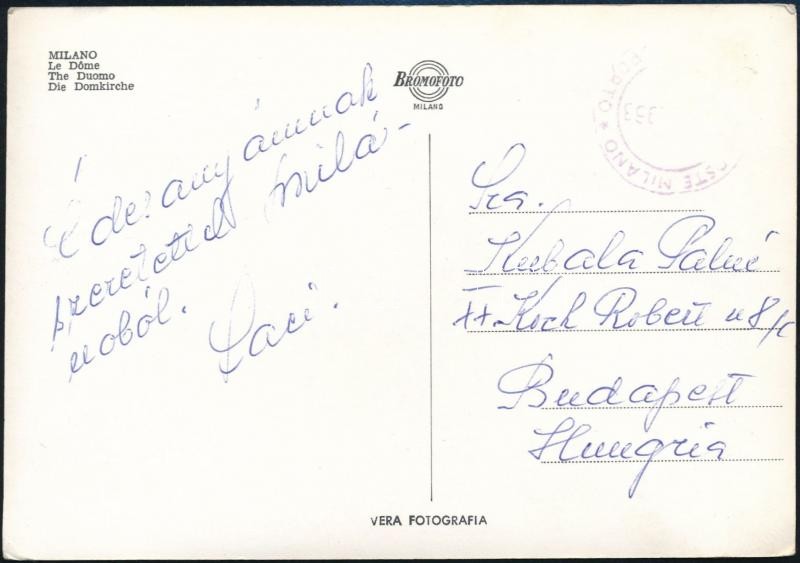 Beschreibung: cca 1960 Kubala László (1927-2002) magyar labdarúgó saját kézzel írt lapja Olaszországból édesanyjának / Autograph postcard from Italy to his mother.