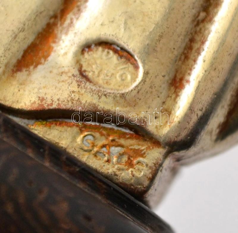 Beschreibung: cca 1930 Szent István szobor. Ezüstözött fém, ébenfa talpon. Gács jelzéssel. Ludvig Bp. gyártói jelzéssel. 15 cm
