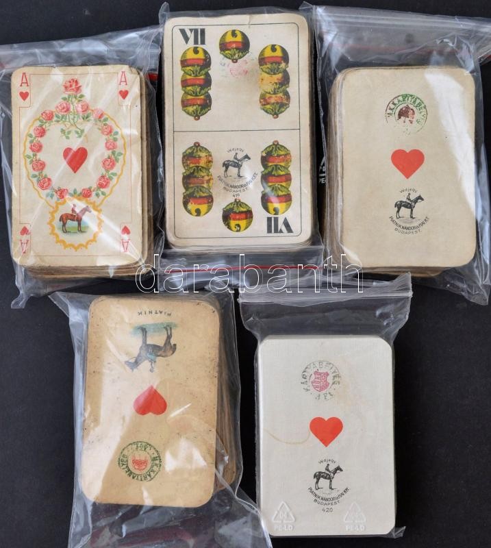 cca 1930-1940 5 csomag Piatnik kártya: 4 bridzs, 1 magyar, használt, t... https://www.darabanth.com/de/30-Gross-Auktion/30.1/Andere-Sammelgebiete/Spielzeuge~12182/cca-1930-1940-5-csomag-Piatnik-kartya-4-bridzs-1-magyar-hasznalt-tisztitott-vegyesen-4-db-ad~II1863365