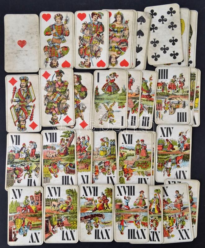 cca 1955 42 lapos tarokk kártya, Játékkártyagyár és Nyomda, tisztított https://www.darabanth.com/de/30-Gross-Auktion/30.1/Andere-Sammelgebiete/Spielzeuge~12182/cca-1955-42-lapos-tarokk-kartya-Jatekkartyagyar-es-Nyomda-tisztitott~II1863209