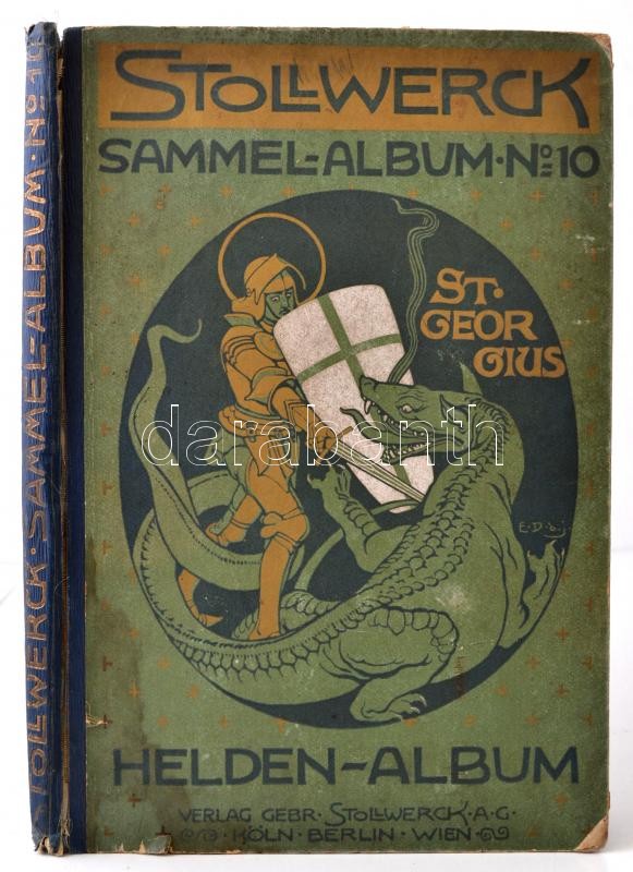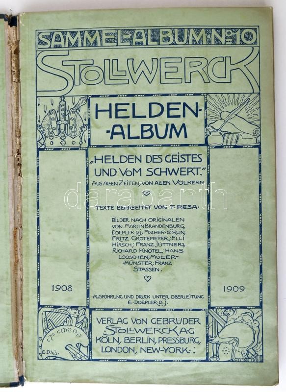 1909 Stollwerck csokoládépapír gyűjtőkártya gyűjtemény. Teljes albumban. Kissé megviselt félvászon kötésben / 1909 Stollwerck chocholate paper collection. Complete in a bit tattered album.