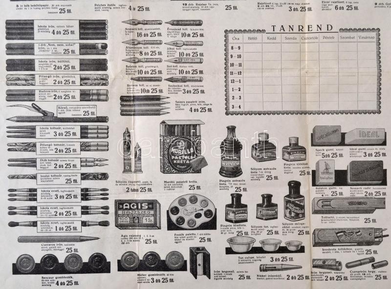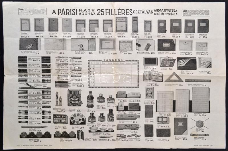cca 1920-1940 Párisi Nagy Áruház írószer reklám brosúrája, középen kit... https://www.darabanth.com/de/30-Gross-Auktion/30.1/Andere-Sammelgebiete/Werbungen~12190/cca-1920-1940-Parisi-Nagy-Aruhaz-iroszer-reklam-brosuraja-kozepen-kitoltetlen-orarendde~II1860797
