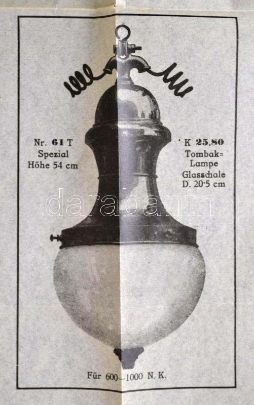 Beschreibung: cca 1920 Bécs, Alois Pragan&Bruder, bécsi lámpagyár nagyméretű reklámnyomtatványa, jó állapotban, 95x60 cm