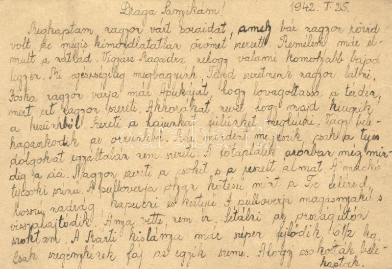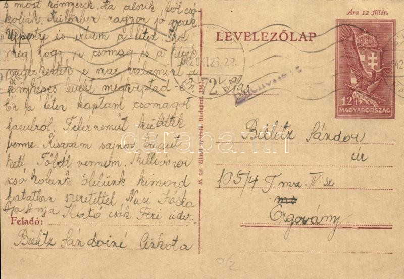 1942 Bielitz Sándorné levele férjének Bielitz Sándor úr zsidó 105/4. IV. sz. KMSZ-nek (közérdekű munkaszolgálatos) az orgoványi munkatáborba / WWII Letter for a Jewish labor serviceman to the labor camp of Orgovány. Judaica + 12f Ga.