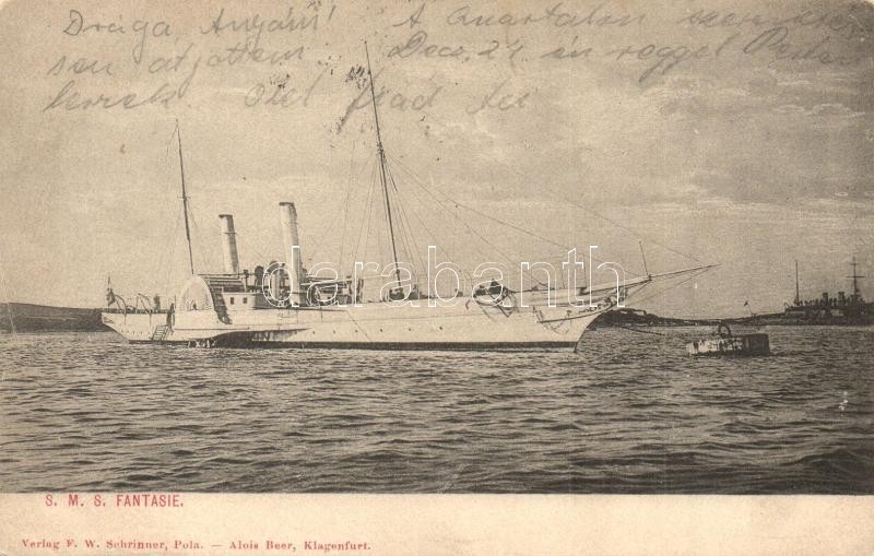 1908 SMS Fantasie osztrák-magyar haditengerészet kerekes gőzhajója, &q... https://www.darabanth.com/de/30-Gross-Auktion/30.1/Ansichtskarten/Kriegsschiffe~12580/1908-SMS-Fantasie-osztrak-magyar-haditengereszet-kerekes-gozhajoja-admiralishajo-KuK-K~II1866661