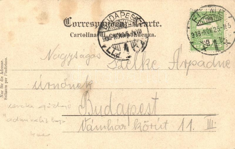 Beschreibung: 1908 SMS Fantasie osztrák-magyar haditengerészet kerekes gőzhajója, "admirálishajó" / K.u.K. Kriegsmarine Raddampfyacht (Admiralsyacht). F.W. Schrinner, Pola. Alois Beer (EK)