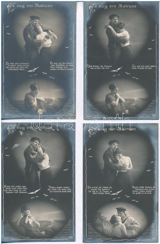 Kaiserliche Marine - 6 db-os német romantikus matrózos képeslap sorozat. Tökéletes állapotban / German Imperial Navy - romantic mariner postcard series with 6 postcards. Excellent condition