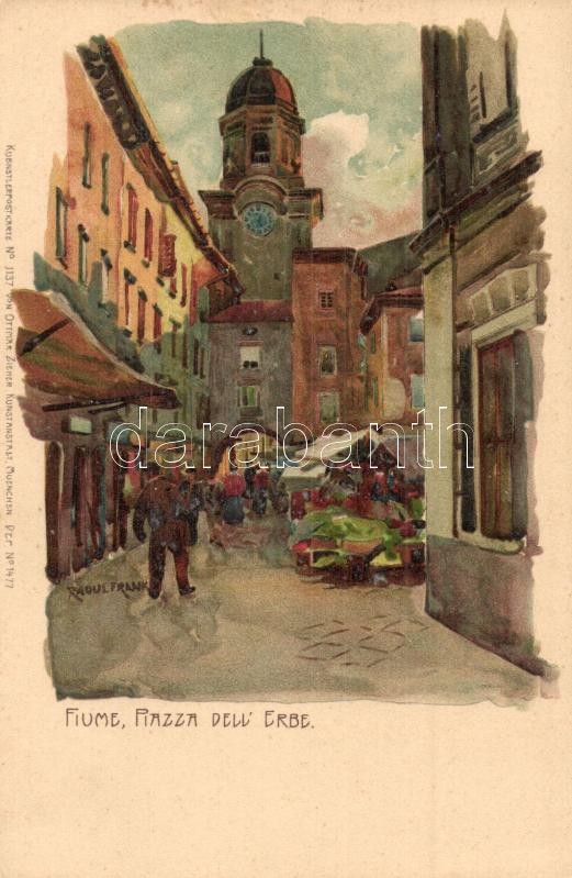 Beschreibung: Fiume, Rijeka; Piazza dell' Erbe / fruit market. Kuenstlerpostkarte No. 1137 von Ottmar Zieher, litho s: Raoul Frank
