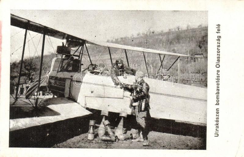 Útra készen bombavetésre Olaszország felé / WWI Hungarian military aircraft ready for bombardment to Italy + "1917 Budapest, Hadirepülőgép Kiállítás" So. Stpl