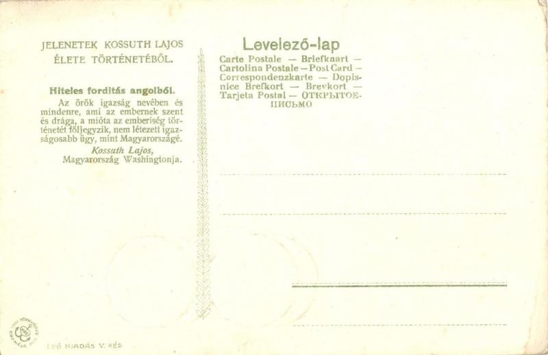 Kossuth Lajos tiszteletére veretett amerikai 18 érem egyike; Kossuth Lajos utazik Amerikába. Jelenetek Kossuth Lajos élete történetéből I. kiadás V. kép. Athenaeum Rt. Budapest / Scenes from the life of Lajos Kossuth. Emb. litho s: K. Sávely D.