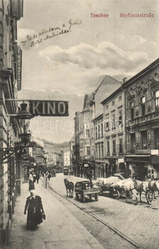 1915 Cieszyn, Teschen; Stefaniestrasse, Kino, / street view with cine... https://www.darabanth.com/de/30-Gross-Auktion/30.1/Ansichtskarten/Polen~12543/1915-Cieszyn-Teschen-Stefaniestrasse-Kino-street-view-with-cinema-shop-of-Sofie-Leitner-plus-K~II1861208
