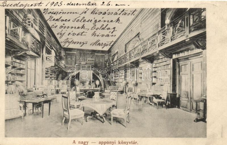 1905 Nagyappony, Appony, Oponice; könyvtár belső a kastélyban. Seefehl... https://www.darabanth.com/de/30-Gross-Auktion/30.1/Ansichtskarten/Slowakei~12507/1905-Nagyappony-Appony-Oponice-konyvtar-belso-a-kastelyban-Seefehlner-J-L-kiadasa-libra~II1865935