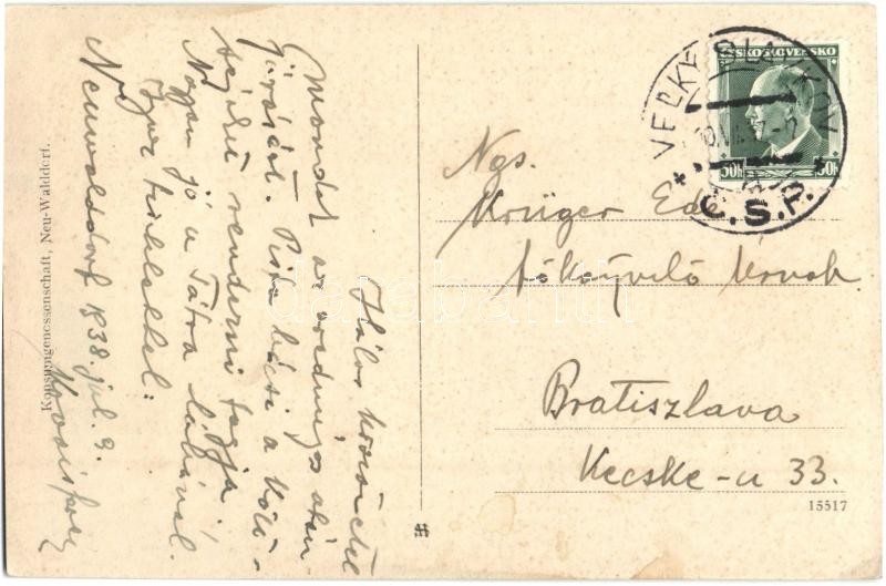 Beschreibung: 1938 Alsóerdőfalva, Újleszna, Neu Walddorf, Nová Lesná; Római katolikus templom / Roman Catholic church (EK)