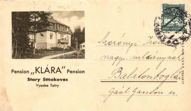 Ótátrafüred, Altschmecks, Stary Smokovec; Klára penzió kinyitható rekl... https://www.darabanth.com/de/30-Gross-Auktion/30.1/Ansichtskarten/Slowakei~12507/Otatrafured-Altschmecks-Stary-Smokovec-Klara-penzio-kinyithato-reklam-kepeslap-hotels-~II1867046