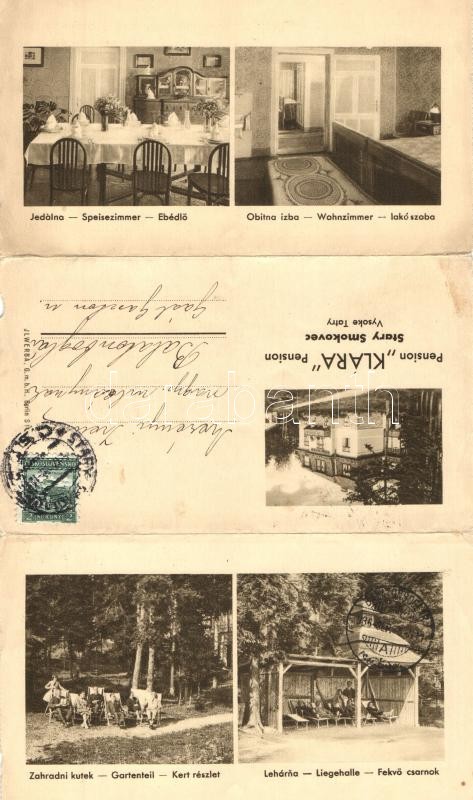 Beschreibung: Ótátrafüred, Altschmecks, Stary Smokovec; Klára penzió kinyitható reklám képeslap / hotel's folding advertising postcard (EK)