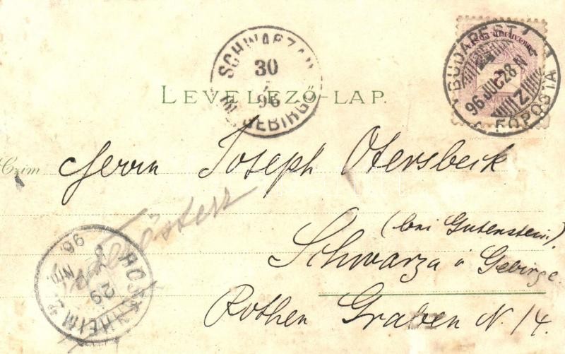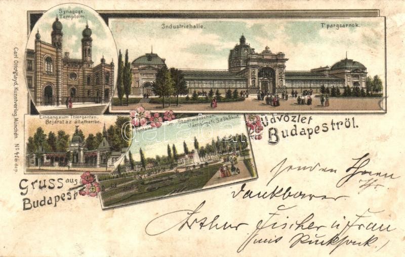 Beschreibung: 1896 (Vorläufer!) Budapest, Iparcsarnok, zsinagóga, bejárat az állatkertbe, városligeti szökőkút. Carl Otto Hayd No. 416. floral, litho (Rb)