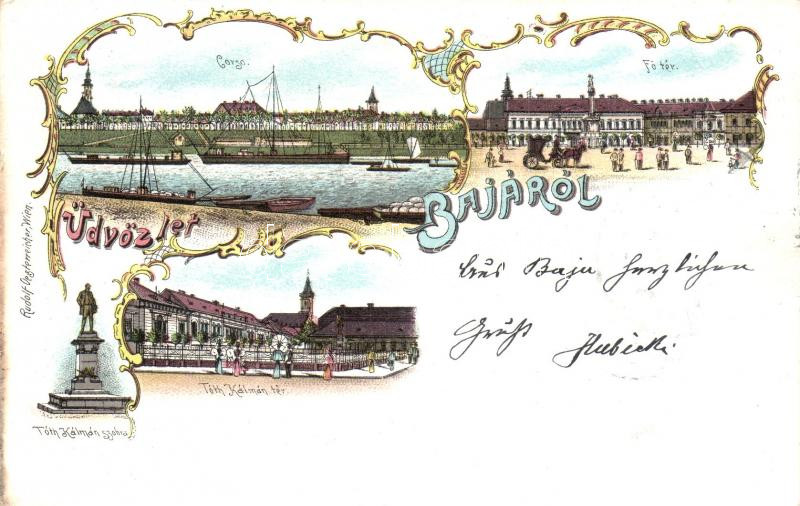 1898 Baja, Korzó, Fő tér, Tóth Kálmán tér és szobor. Rudolf Oesterreic... https://www.darabanth.com/de/30-Gross-Auktion/30.1/Ansichtskarten/Ungarn~12505/1898-Baja-Korzo-Fo-ter-Toth-Kalman-ter-es-szobor-Rudolf-Oesterreicher-Art-Nouveau-litho~II1487777