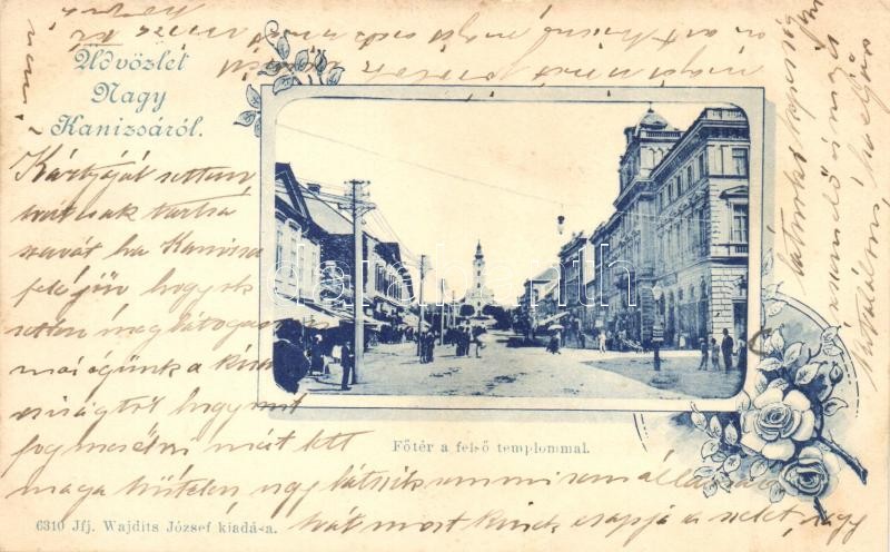 1898 Nagykanizsa, Fő tér, Felső templom. Ifj. Wajdits József kiadása 6... https://www.darabanth.com/de/30-Gross-Auktion/30.1/Ansichtskarten/Ungarn~12505/1898-Nagykanizsa-Fo-ter-Felso-templom-Ifj-Wajdits-Jozsef-kiadasa-6310-floral~II1856769