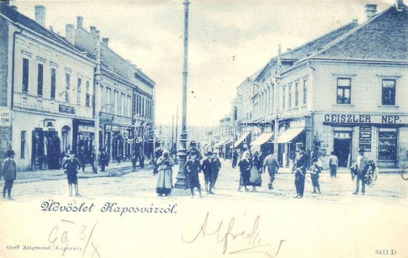1899 Kaposvár, utcakép, Pollák József és Geiszler Nep. üzlete(EK) https://www.darabanth.com/de/30-Gross-Auktion/30.1/Ansichtskarten/Ungarn~12505/1899-Kaposvar-utcakep-Pollak-Jozsef-es-Geiszler-Nep-uzleteEK~II1856657
