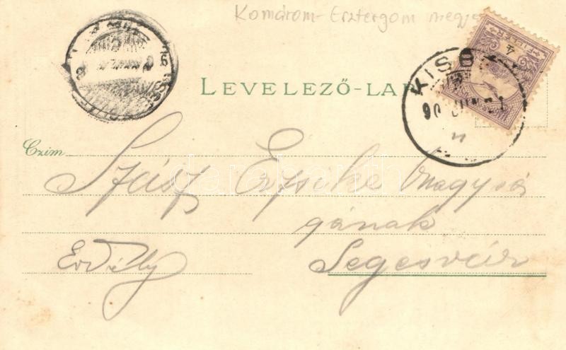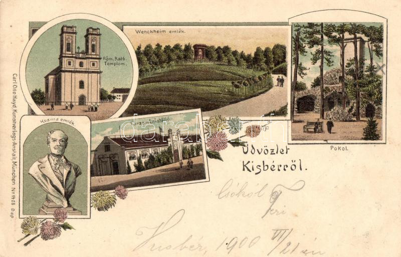 1900 Kisbér, Törzsménes istálló, Wenckheim és Kozma emlék, Pokol, Római katolikus templom. Carl Otto Hayd Kunstverlags-Anstalt No. 1428. floral Art Nouveau litho