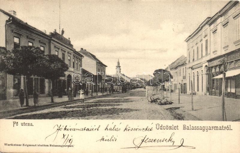 Beschreibung: 1905 Balassagyarmat, Fő utca, városháza, Fischer üzlete (EK)