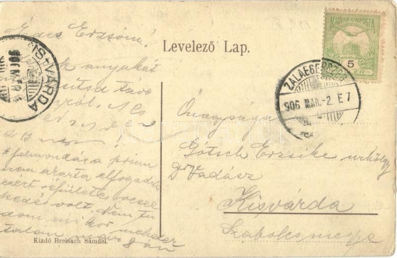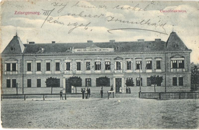 Beschreibung: 1906 Zalaegerszeg, csendőr laktanya. Breisach Sámuel kiadása (EK)