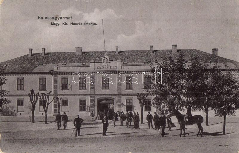 1908 Balassagyarmat, Magy. kir. honvéd laktanya (EB) https://www.darabanth.com/de/30-Gross-Auktion/30.1/Ansichtskarten/Ungarn~12505/1908-Balassagyarmat-Magy-kir-honved-laktanya-EB~II1855315