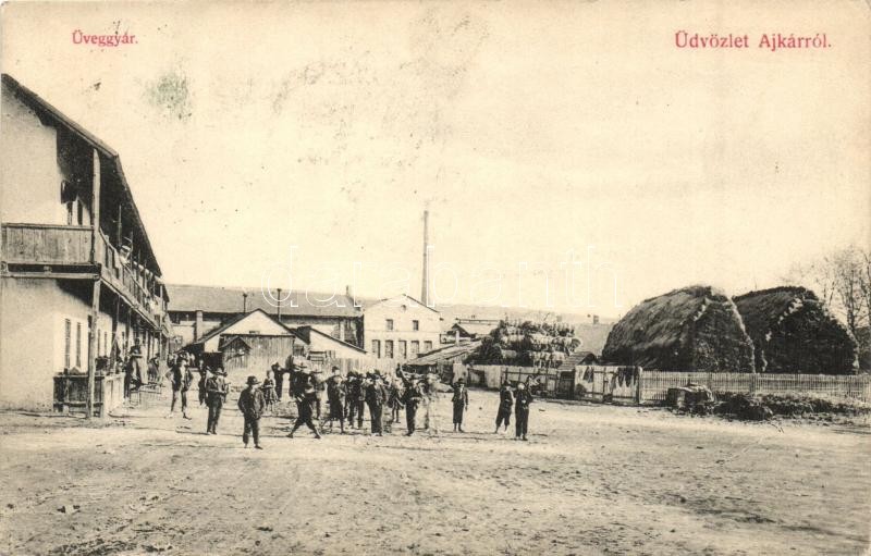 1909 Ajka, Üveggyár + Székesfehérvár-Czelldömölk https://www.darabanth.com/de/30-Gross-Auktion/30.1/Ansichtskarten/Ungarn~12505/1909-Ajka-Uveggyar-plus-Szekesfehervar-Czelldomolk~II1862084