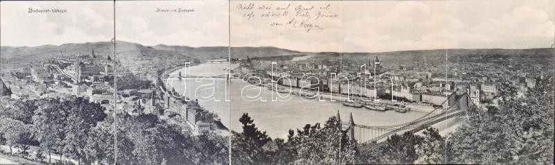 1909 Budapest. Dunai panoráma az épülő felállványozott Erzsébet híddal. Öt-részes panorámalap / panoramacard with the Elisabeth bridge's construction site. 5-tiled panoramacard (hajtásnál szakadt / bent til broken)