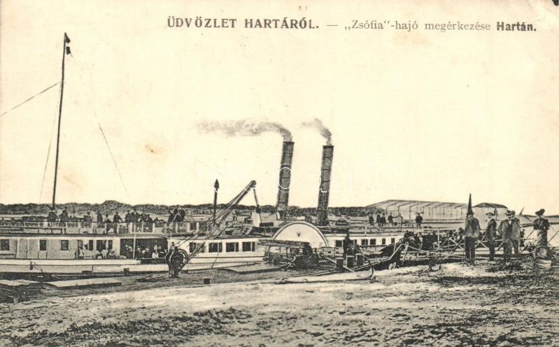 1914 Harta, Zsófia hajó megérkezése a kikötőben. Molnár Gyula kiadása... https://www.darabanth.com/de/30-Gross-Auktion/30.1/Ansichtskarten/Ungarn~12505/1914-Harta-Zsofia-hajo-megerkezese-a-kikotoben-Molnar-Gyula-kiadasa-es-Klein-I-fenyke~II1866299