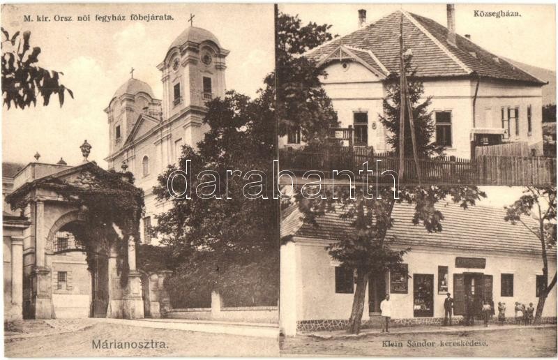 1933 Márianosztra, M. kir. orsz. női fegyház főbejárata, községháza, K... https://www.darabanth.com/de/30-Gross-Auktion/30.1/Ansichtskarten/Ungarn~12505/1933-Marianosztra-M-kir-orsz-noi-fegyhaz-fobejarata-kozseghaza-Klein-Sandor-kereskedC3~II1853370