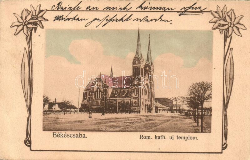 Békéscsaba, Római katolikus új templom. Art Nouveau, floral (EK) https://www.darabanth.com/de/30-Gross-Auktion/30.1/Ansichtskarten/Ungarn~12505/Bekescsaba-Romai-katolikus-uj-templom-Art-Nouveau-floral-EK~II1858662