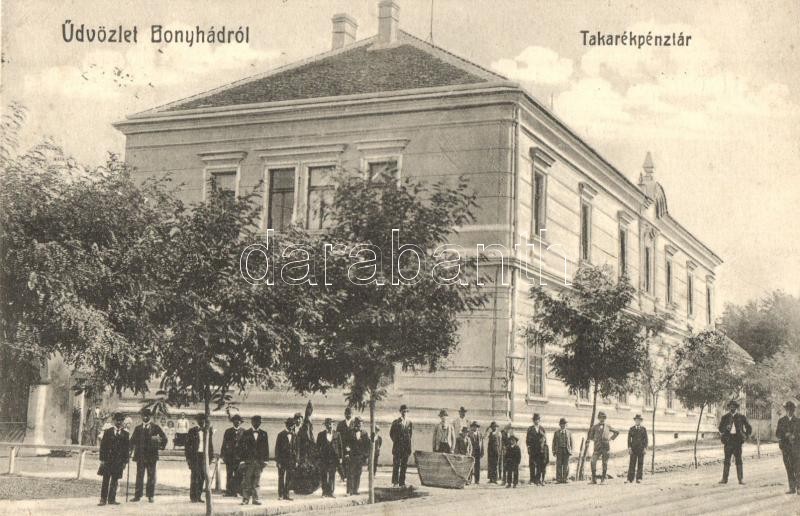 Beschreibung: Bonyhád, takarékpénztár. W.L. Bp. Hoffer József kiadása (EK)