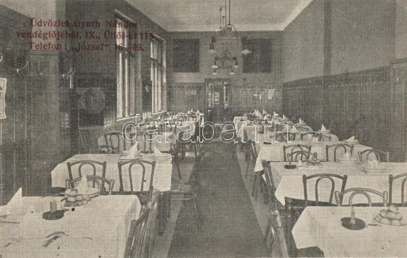 Budapest IX. Gyuth Nándor vendéglője, belső. Üllői út 115. https://www.darabanth.com/de/30-Gross-Auktion/30.1/Ansichtskarten/Ungarn~12505/Budapest-IX-Gyuth-Nandor-vendegloje-belso-Ulloi-ut-115~II1855187