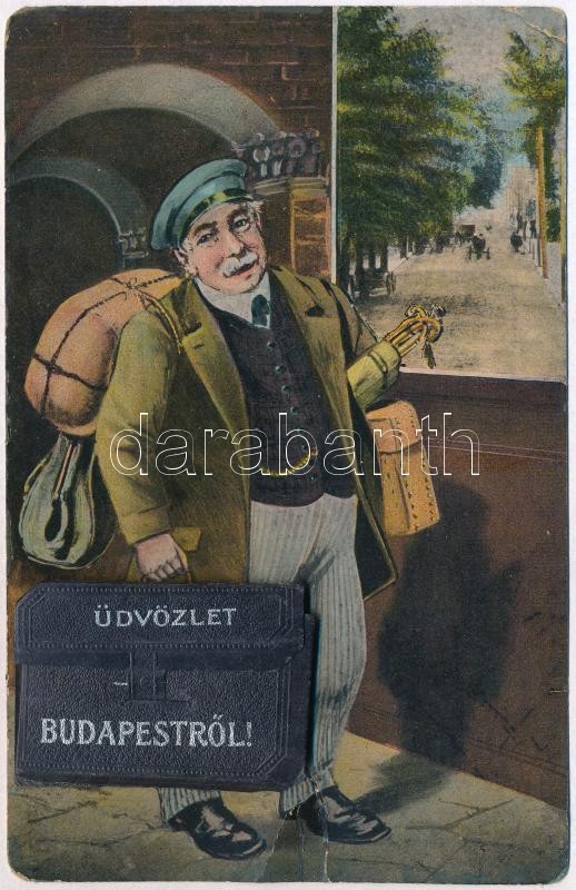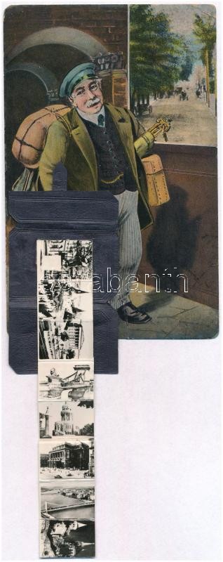 Budapest. Utazótáskás férfi leporellolap (EK) https://www.darabanth.com/de/30-Gross-Auktion/30.1/Ansichtskarten/Ungarn~12505/Budapest-Utazotaskas-ferfi-leporellolap-EK~II1866257