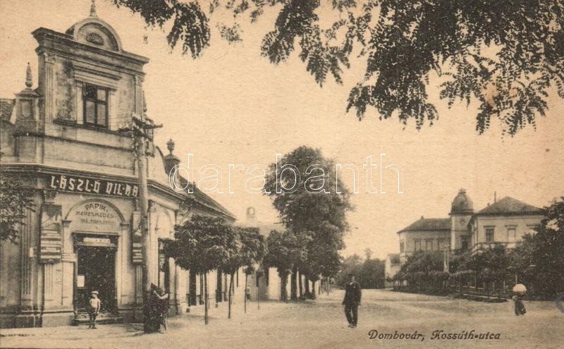 Dombóvár, Kossuth utca, László Vilma papírkereskedés üzlete (EK) https://www.darabanth.com/de/30-Gross-Auktion/30.1/Ansichtskarten/Ungarn~12505/Dombovar-Kossuth-utca-Laszlo-Vilma-papirkereskedes-uzlete-EK~II1856596
