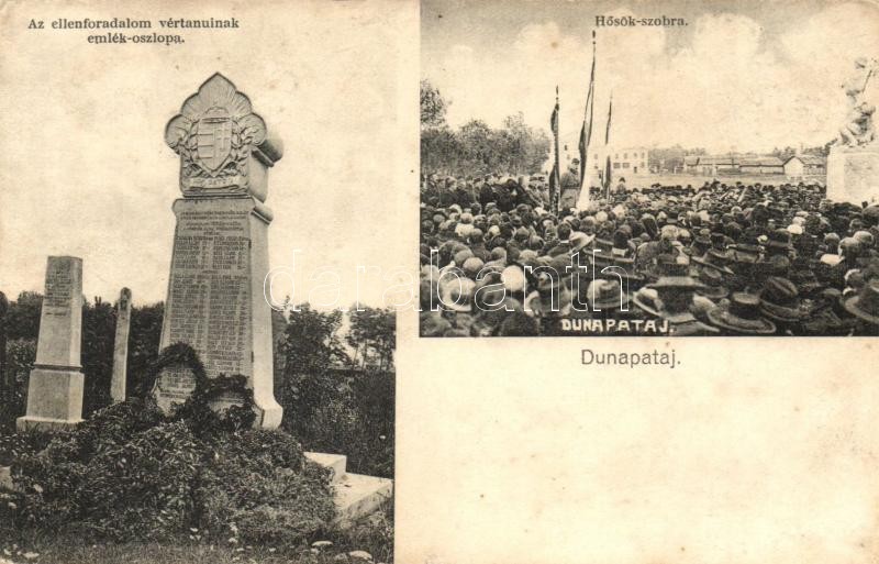 Beschreibung: Dunapataj, Hősök szobra avatási ünnepsége, Az ellenforradalom vértanúinak emlékoszlopa. Faragó Gergely kiadása